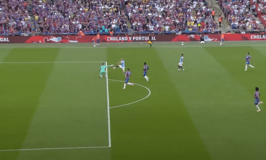 - Phát bóng lên: Khi bóng rời khỏi phần sân của đội tấn công, bóng được đá vào khu vực cầu môn (nhỏ hơn vòng cấm địa).